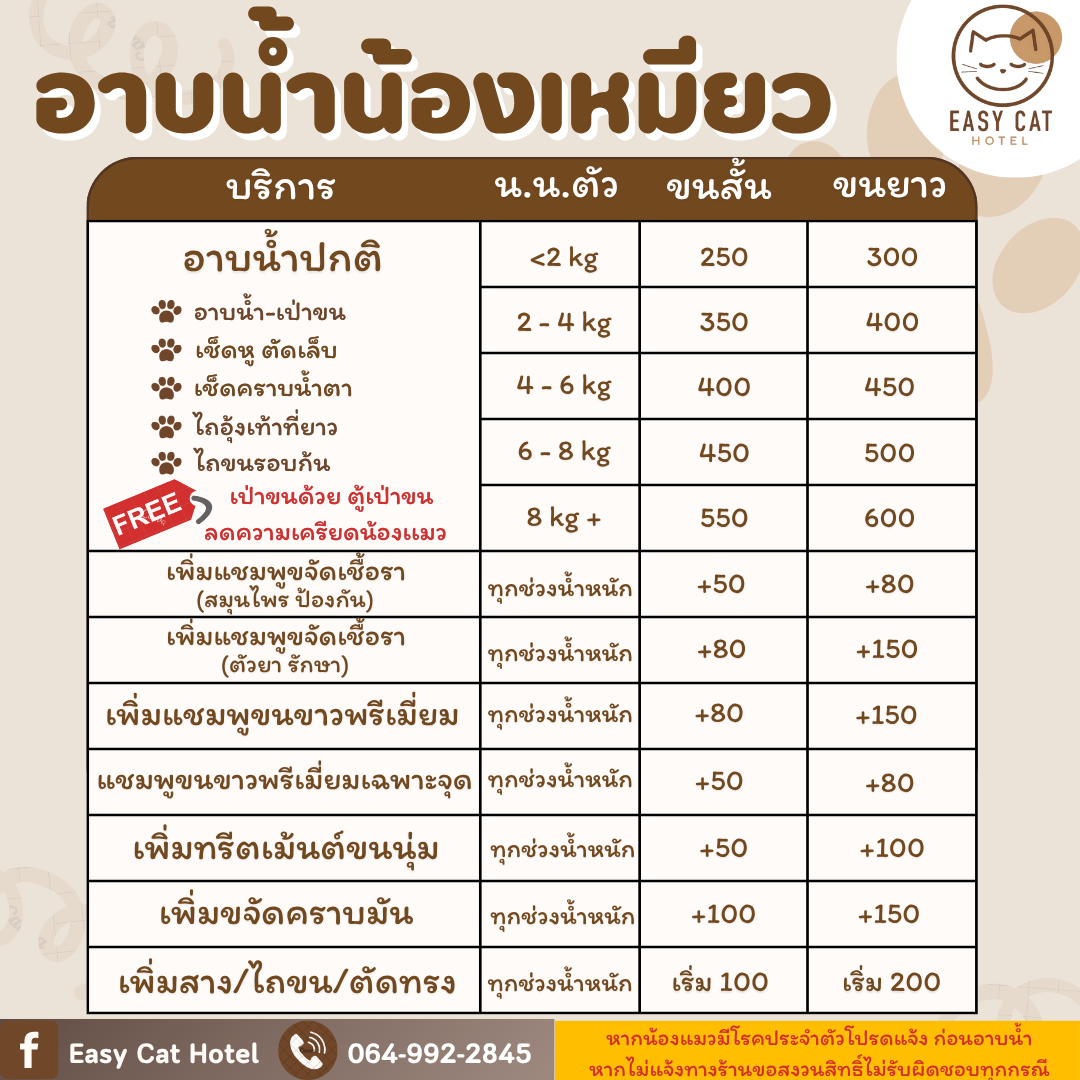น้องแมวที่เข้าพักต้องหยอดยาเห็บหมัดก่อนเข้าพักไม่เกิน 1 เดือน (มีบริการให้ก่อนเข้าพัก)
